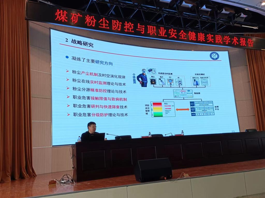 报告会上,江丙友教授结合我国煤矿粉尘防控情况及矿工职业健康形势,从基本状况、战略背景、安理实践、创新成果四个方面详细介绍了煤矿粉尘防控目前状况及未来发展,同时对比国内外煤矿粉尘防控技术,对我国的煤尘防控提出了新设想。