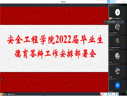 4月5日晚18:30,公司通过腾讯会议线上召开了2022届毕业生德育答辩业务培训会,德育答辩工作委员会成员及全体德育论文指导教师参加了会议。会议由辅导员薛广鑫主持,并结合《安全公司2022届本科毕业生德育答辩工作实施方案》对全体与会成员进行了业务培训。最后,党委副书记郑红岩对德育答辩整体工作强调了以下几点:一、高度重视。牢牢契合公司“五观、五四四”德育目标,迅速启动德育答辩工作。二、精心指导。从确定题目开始,反复推敲,结合员工自身实际情况进行系统梳理。三、严格把关。指导教师要切实履行工作职责,确保德育答辩工作的过程严格、质量过关。