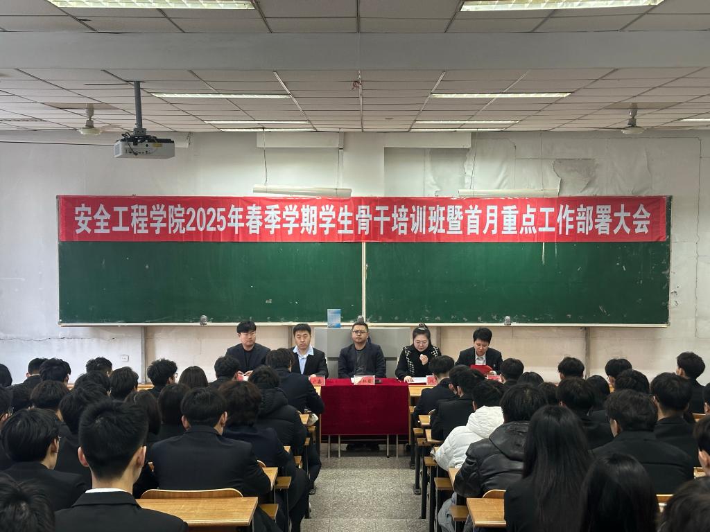 会上,刘科然总结了2024年学团组织工作开展情况,并对各位团学骨干的辛勤付出和无私奉献给予肯定;薛广鑫详细安排了2025年春季学期首月重点工作及首周教育工作,督促各位团学骨干高度重视,精心设计,通力合作,保证效果;随后刘科然传达了校级员工骨干培训班精神,要求全体团学骨干认真学习,铭记使命,以身作则,主动担当;最后党委副书记郑红岩以“培”出精气神,“训”出真本领,学干培训“有料”又“有效”为题与全体团学骨干进行了深入交流。