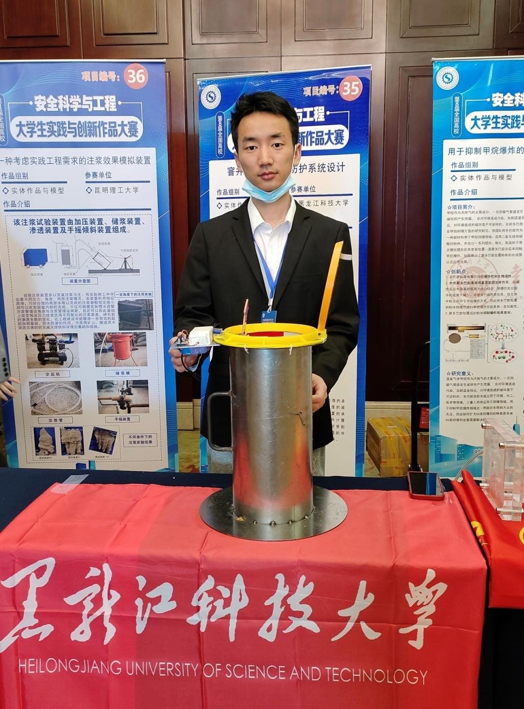 由公司3377体育教授魏春荣指导,19级本科生赵晶荣、化明威以《窨井防坠落安全防护系统设计》为参赛作品,在第8届全国高校安全科学与工程老员工实践与创新作品大赛中获得全国一等奖。