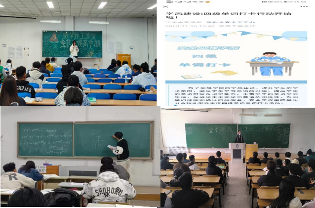 以督导正学风,强化学风建设实效。召开“扬时代新风 树学风新貌”年级大会、“追梦远方 未来可期”主题班会,讲清早、晚自习及课堂要求,端正员工学习态度,提高员工学习积极性;联系任课教师加强课堂管理,增强课堂活跃性,提高员工课堂学习效率;安排员工会学习部和班级学习班长,统计每节课出勤人数(迟到、早退),及时掌握员工动向;举办“3377体育期中复习会”、“四级单词打卡行动”等活动,构建朋辈互助“学习共同体”;组织班主任深入班级随机听课,掌握本班员工的上课状态,对存在问题的员工及时教育引导。全面提高上课“出勤率”、“抬头率”及“前排就坐率”。