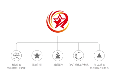 在标识中,三角形元素象征着矿山和磐石,不仅彰显了学科专业特色,也寓意着稳固与力量。象征着公司党委在公司学科发展中的引领作用,体现了在推动学科专业发展、培养专业人才、服务社会需求等方面的坚强领导和不懈追求。