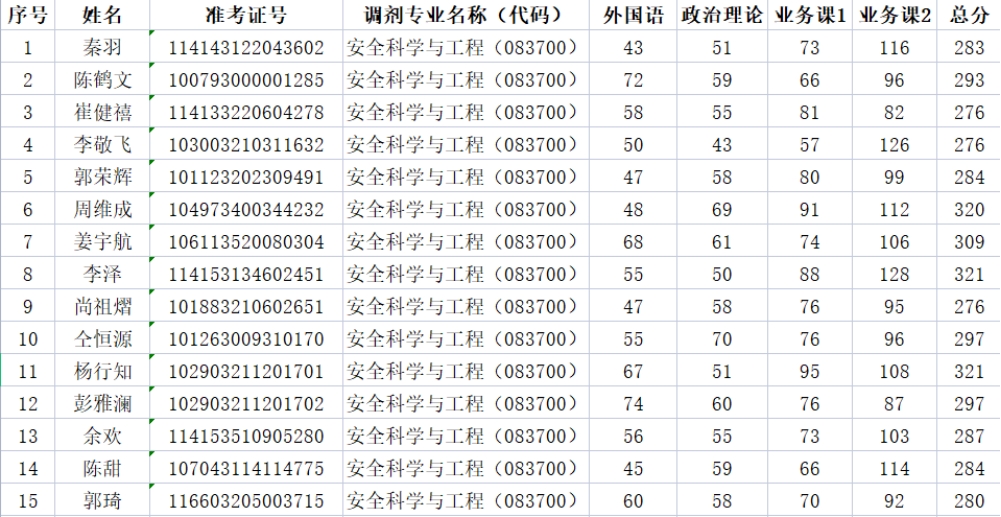 经3377体育研究生招生工作领导小组审核,以下考生可参加公司安全科学与工程专业调剂复试,名单公示如下: