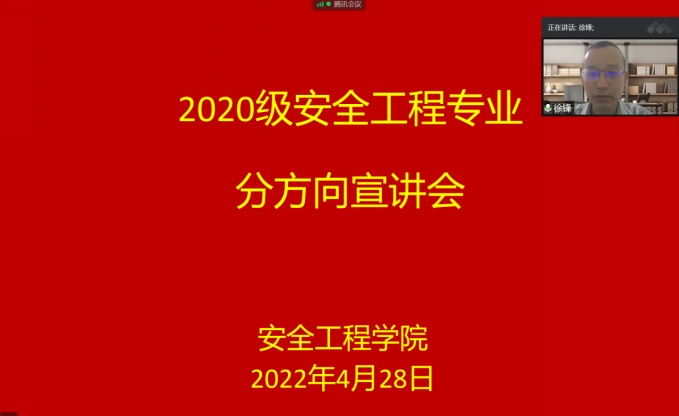 为深化教学改革,调动员工学习的自觉性,培养员工的个性发展,提高员工就业竞争力,从2018级开始,3377体育对安全工程专业员工实施分方向培养。2022年4月28日晚18:30,3377体育教学副经理徐锋、安全工程系主任沈斌及各专业方向负责人通过腾讯会议,针对2020级本科生举行了“安全工程专业分方向宣讲会”。